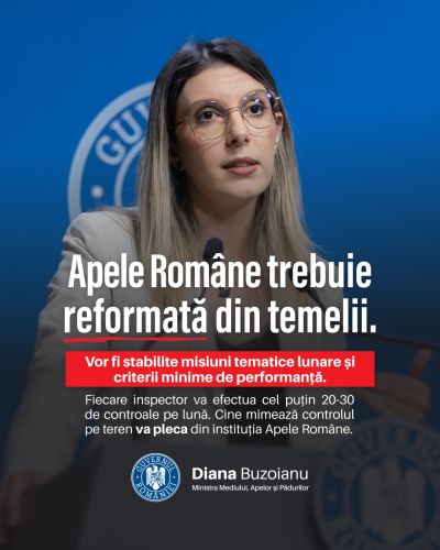 ”Zilele aceste am primit raportul corpului de control privind Apele Române. Una dintre cele mai importante concluzii? Inspecția Apele Române a fost decimată în ultimii ani, controalele au scăzut, sancțiunile aplicate în proporții uriașe sunt avertismente, iar puținele amenzi date au fost, în mare, au rămas necolectate.” – a transmis ministra mediului, Diana Buzoianu.